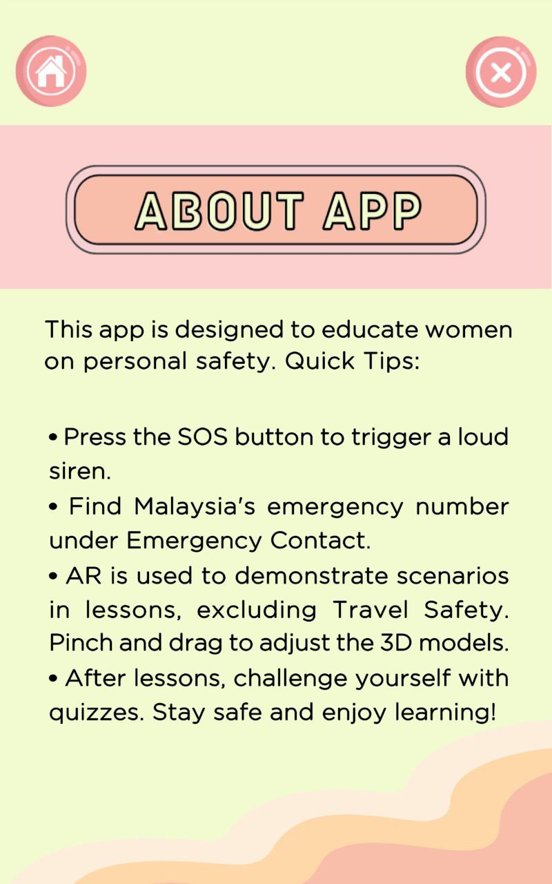 The SafeSOLO mobile learning application is designed to enhance women's safety by providing essential knowledge and self-defense skills using markerless Augmented Reality (AR) technology. Aimed at women aged 18 to 34, the app addresses the lack of effective safety education tools and inadequate information sharing among institutions. SafeSOLO offers interactive and engaging content to empower women with practical safety tips and knowledge, helping them feel more secure in various situations. Through this innovative approach, the app seeks to improve the overall well-being and safety of women.